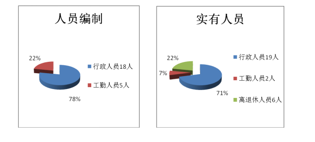 截止2018年底,本部门人员编制23人,其中行政编制18人、机关工勤编制5人;实有人员21人,其中行政19人、机关工勤2人。单位管理的离退休人员6人。