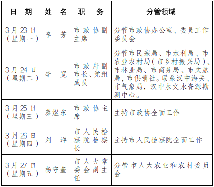 为进一步畅通信访渠道,方便群众及时就地反映诉求、解决问题,现将3月23日-27日市级领导在汉中市信访接待中心公开接访安排计划公布如下: